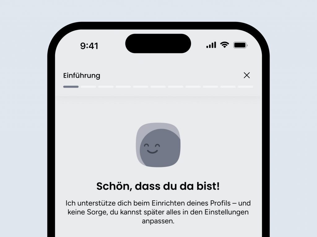 Das Onboarding führt dich in 11 Schritten durch die Grundeinrichtung: