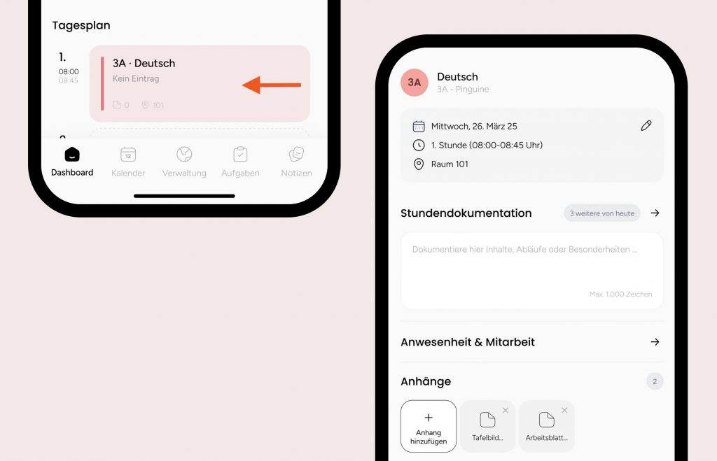 1. Tippe im Dashboard auf die gewünschte Unterrichtsstunde.